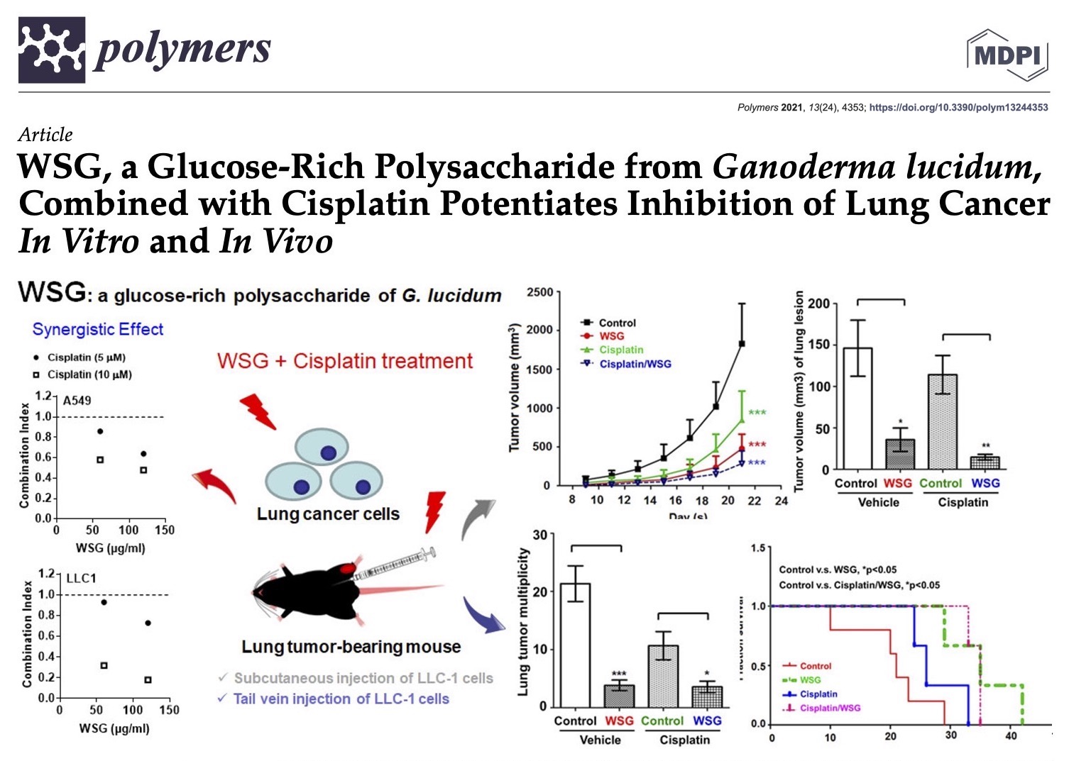 〔林东毅团队2021研究成果〕「灵芝子实体多醣+顺铂」抗肺腺癌,提高疗效&存活率