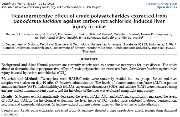 印尼、泰国:灵芝多醣减轻四氯化碳造成的急性肝损伤