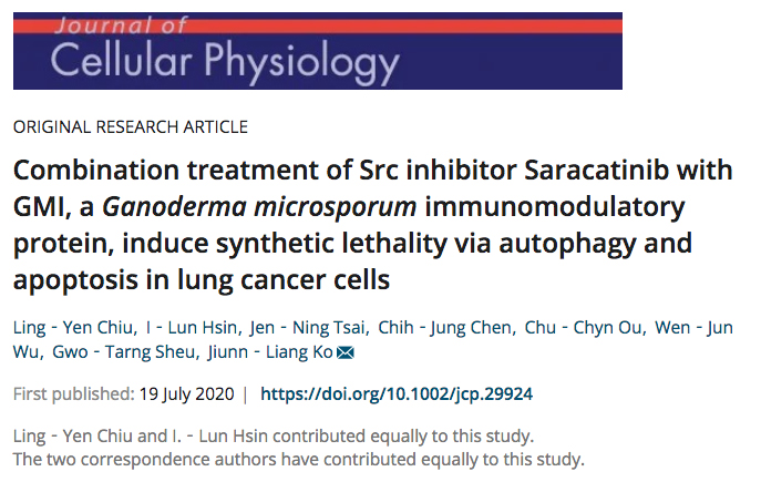 2020研究新知|小孢子灵芝免疫调节蛋白质GMI再次神助攻!提高「Src酪胺酸激酶抑制剂──塞卡替尼」对肺腺癌细胞的杀伤力