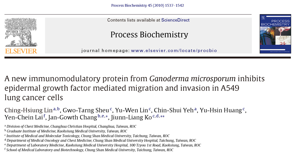 2010研究新知|小孢子灵芝免疫调节蛋白质GMI可遏止EGF对肺腺癌细胞的煽动,降低癌转移的可能