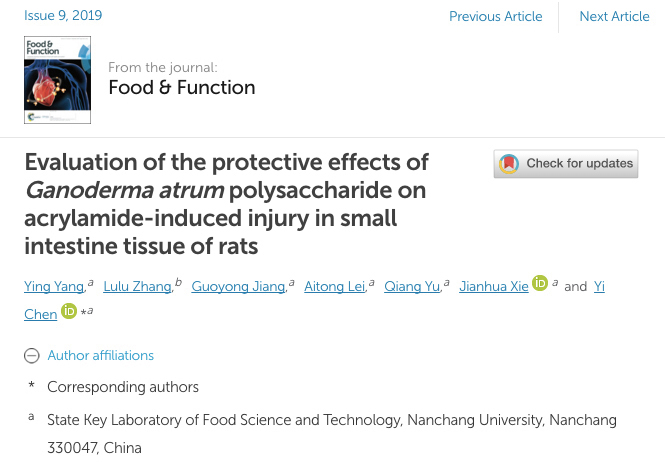 中国:黑灵芝多醣保护肠道,减轻致癌物丙烯醯胺的伤害