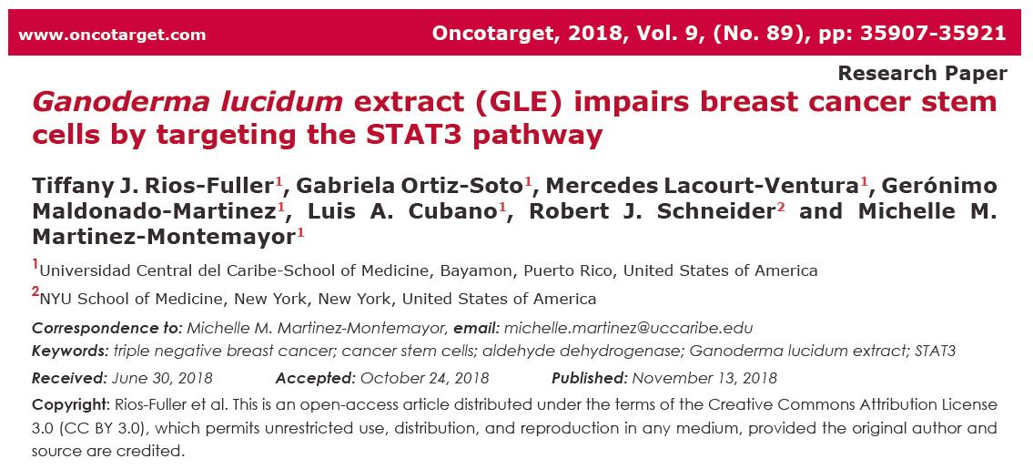 波多黎各、美国:灵芝萃取物打击癌干细胞,有效对付三阴性乳癌