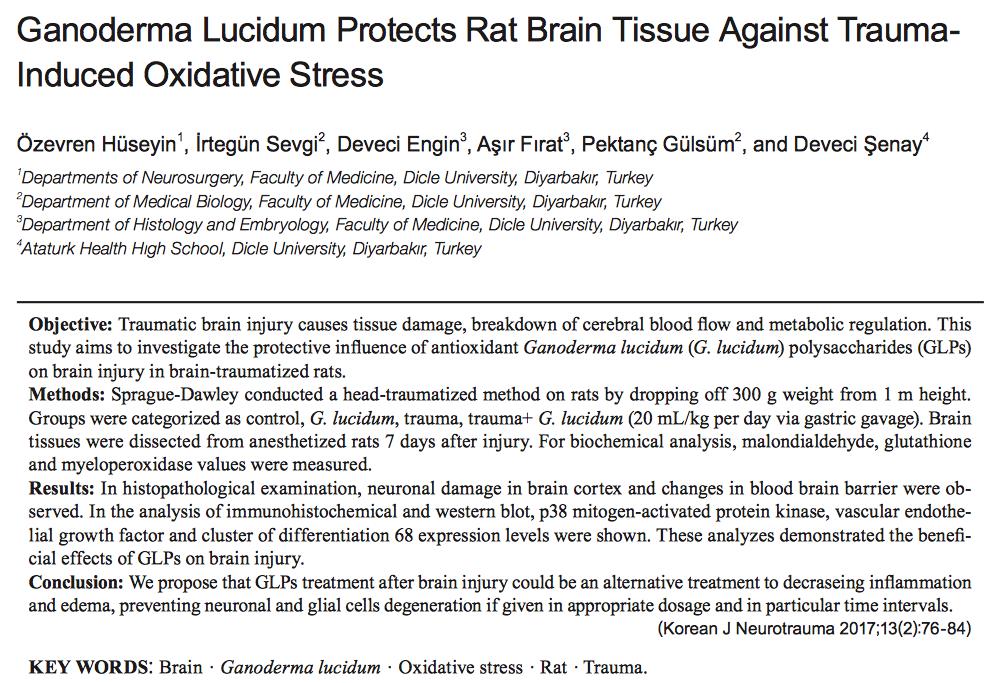 土耳其:灵芝多醣加速脑部创伤恢复