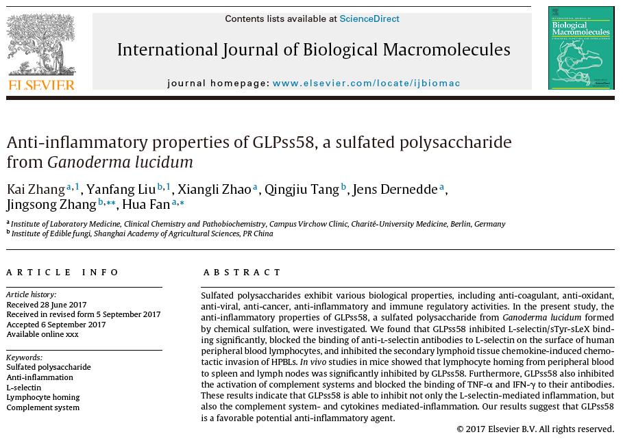 〔张劲松团队2017科研成果〕硫酸化的灵芝多醣可有效抗发炎