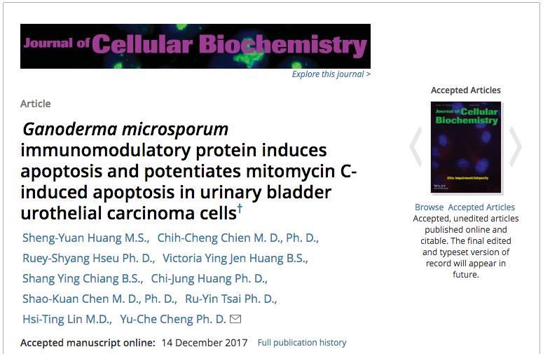 2018研究新知|小孢子灵芝免疫调节蛋白质GMI能直接诱发「非肌层浸润性膀胱癌」之细胞凋亡反应