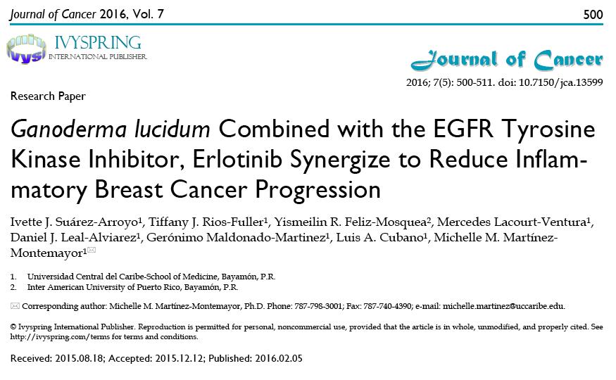 波多黎各:体内实验证实,灵芝对「发炎性乳腺癌」的抑制率达50%
