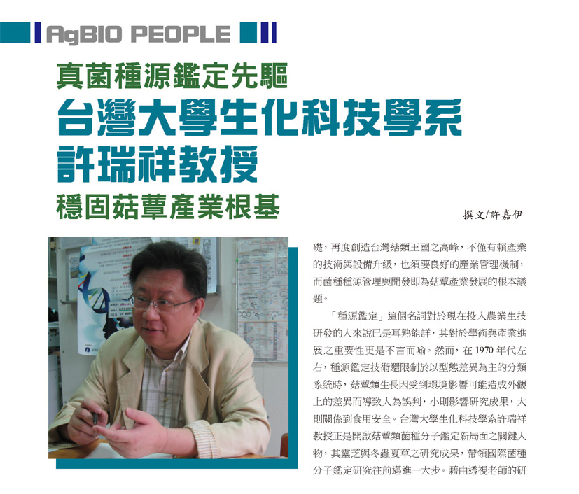 〔专访〕台湾大学生化科技学系许瑞祥教授:真菌种源监定先驱,稳固菇蕈产业根基