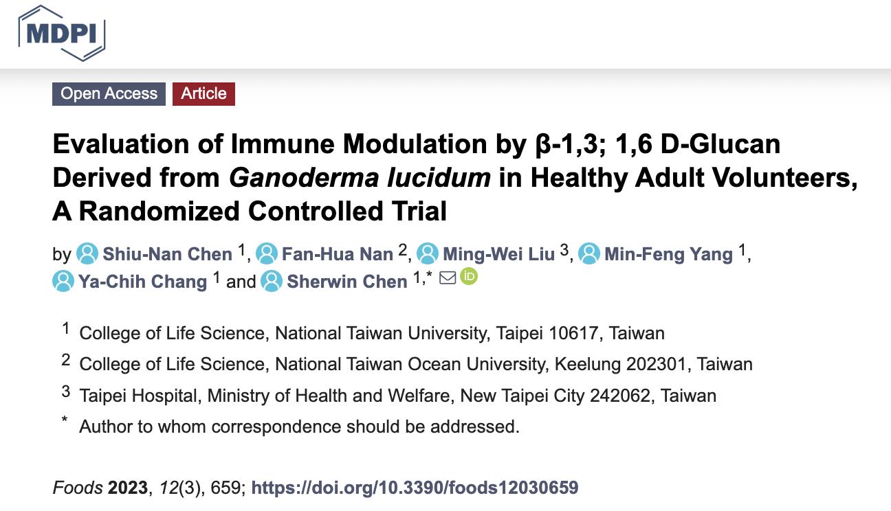 台湾:健康成人日服灵芝β-葡聚醣(灵芝多醣)的免疫功效——来自随机、双盲、有安慰剂对照组的临床试验结果