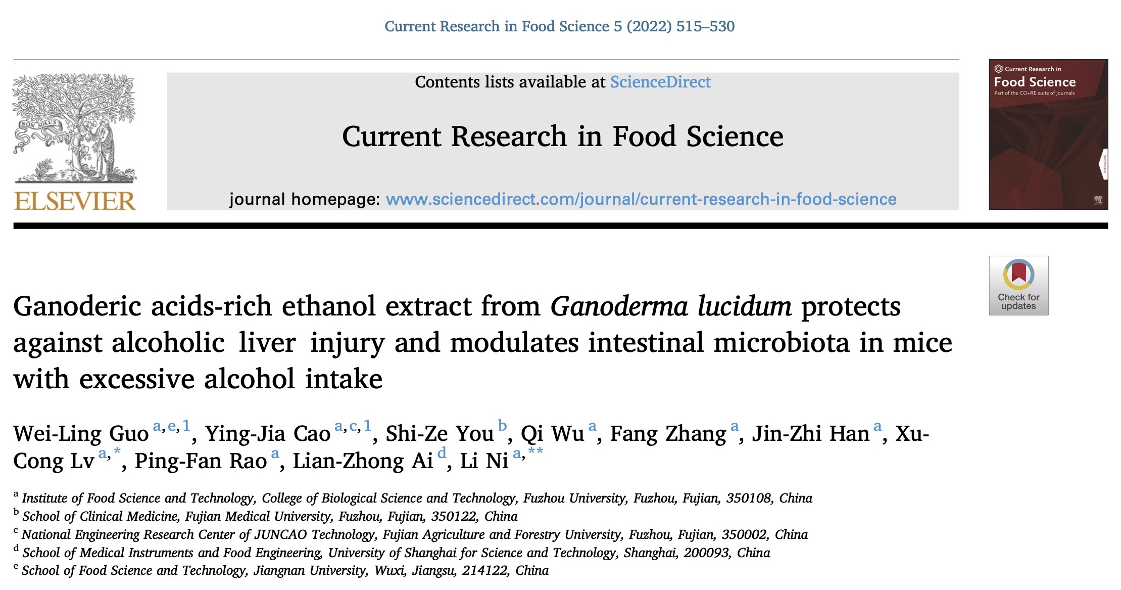 中国:灵芝子实体乙醇萃取物可减轻酒精对肝功能和肠道菌的伤害