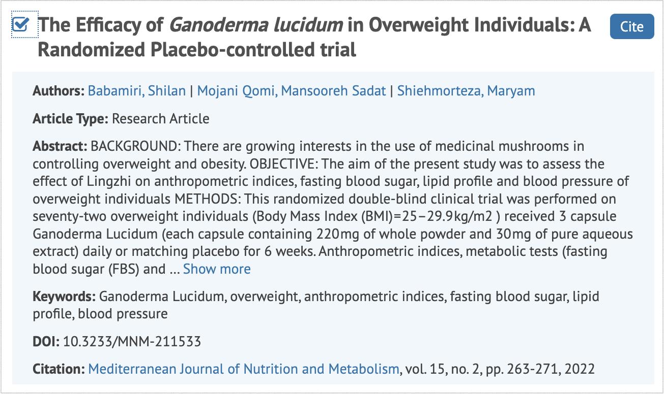 伊朗:灵芝真能减重吗?——临床试验有答案
