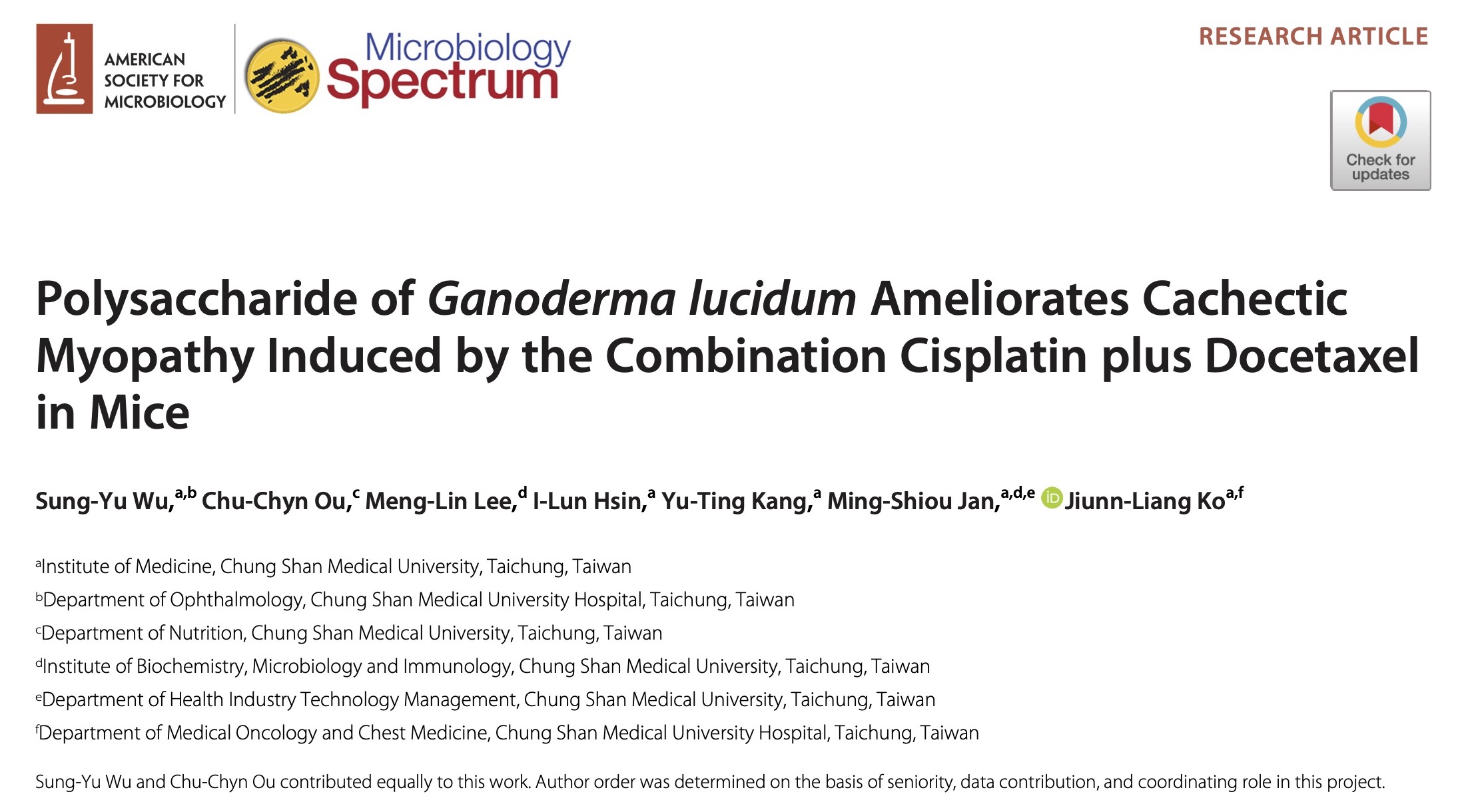 台湾:从动物实验看见灵芝多醣防止化疗引发「恶病质」的可能性