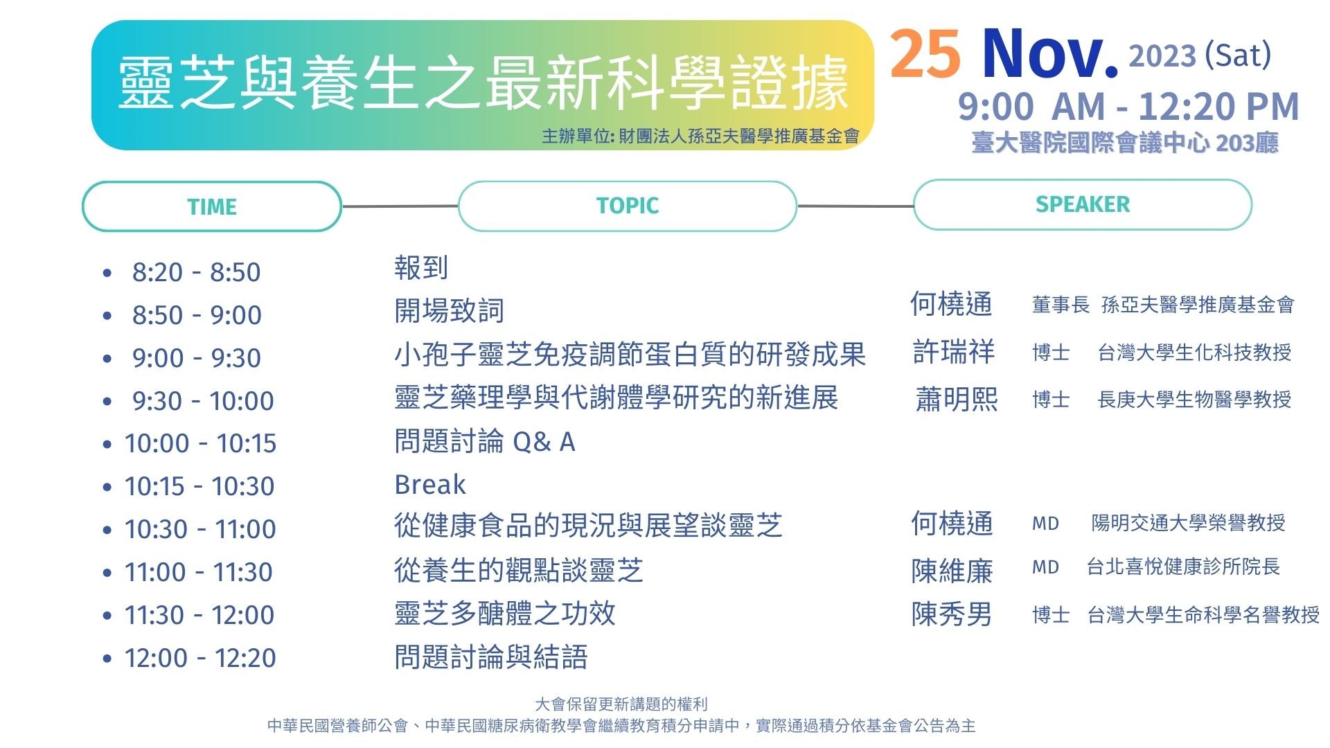 活动地点:台大医院国际会议中心203厅