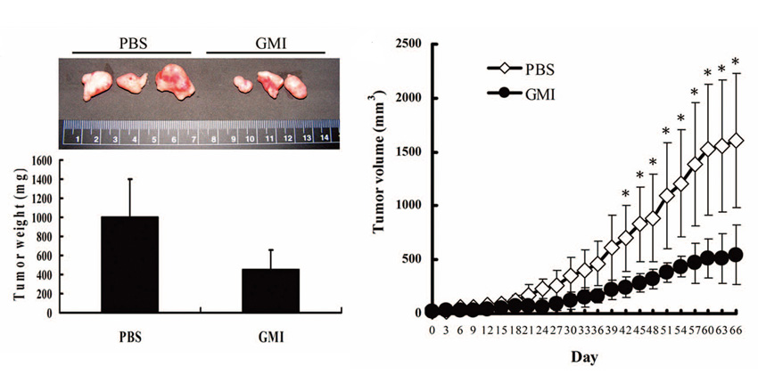 动物实验即证实,以口服方式喂食非小细胞肺癌的动物 GMI,每公斤体重喂食 4~8 mg 就能产生抗肿瘤作用,这个浓度比起灵芝其他有效成分相对低很多。