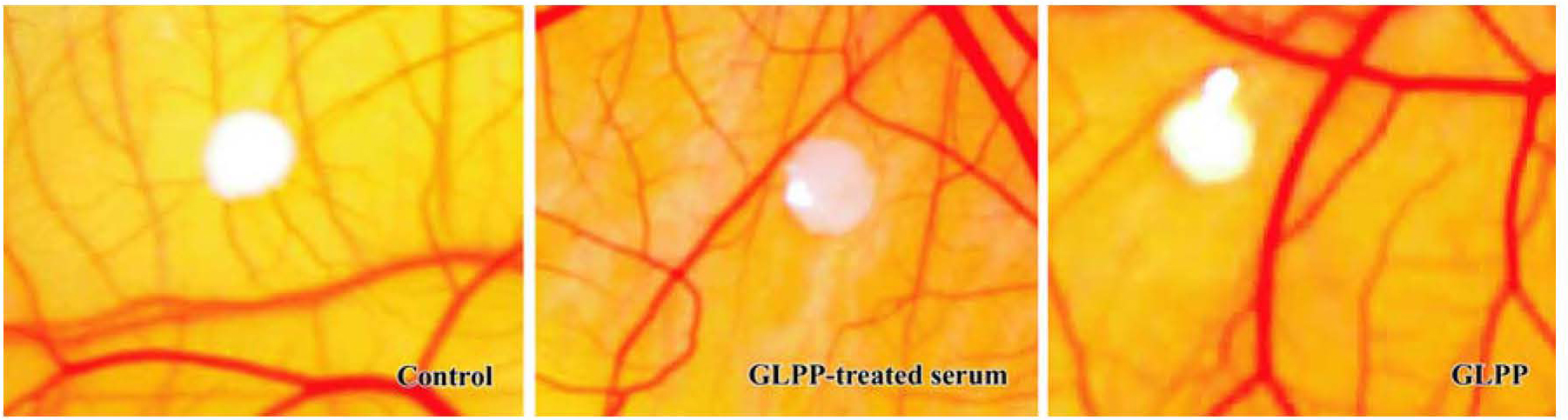 图1 灵芝多醣肽对鸡胚尿囊膜微血管生成的抑制作用